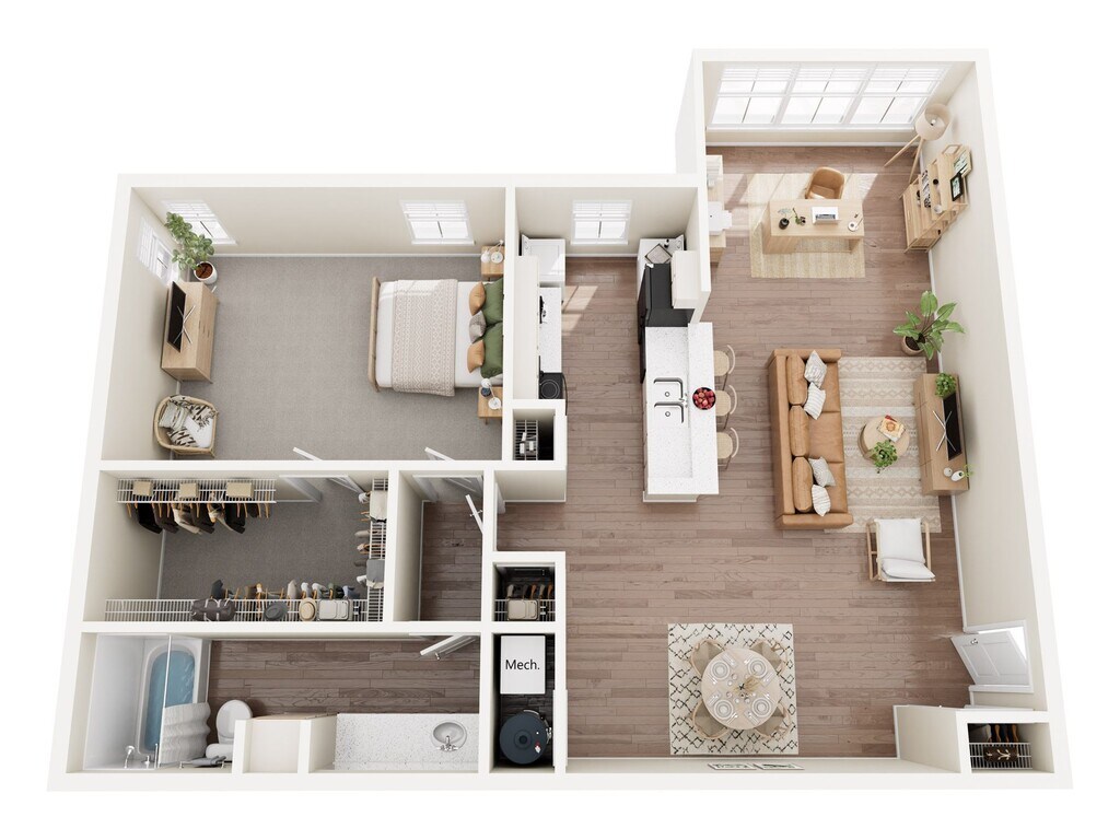 1 Dormitorio, 1 Baño, 853 pies²Disponible Dec 13Galería del Modelo