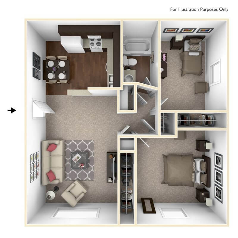 2 Dormitorios, 1 Baño, 780-806 pies²Disponible AhoraEl más grandeEsta opción tiene las unidades más grandes para este modeloGalería del Modelo