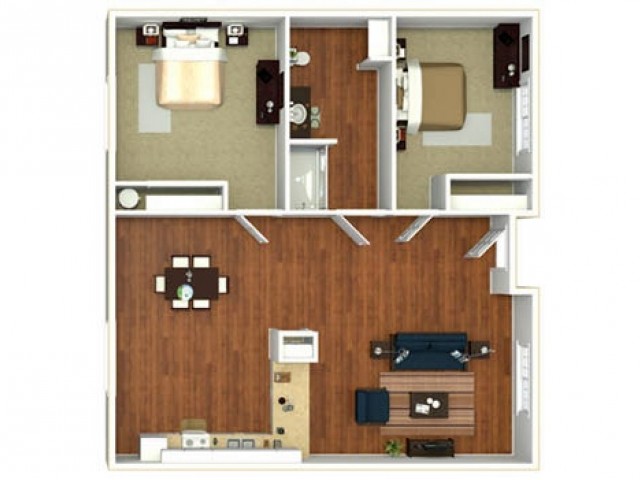 Modelo de apartamento: Ashton FlatLlame para Precios2 Dormitorios, 1 Baño, 960 sq ftNo Disponible![]()