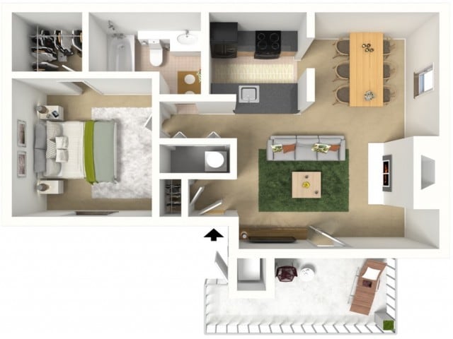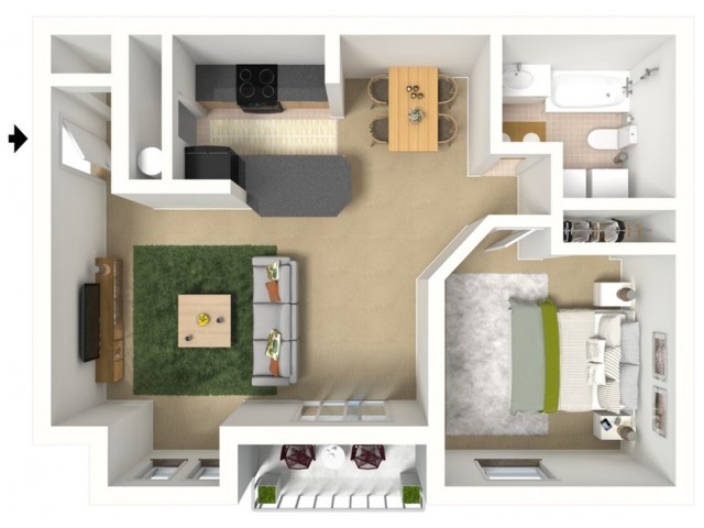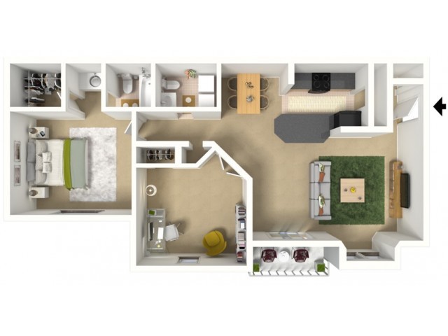Modelo de apartamento: Pintail1 Dormitorio, 1 Baño, 642 sq ftNo Disponible![]()