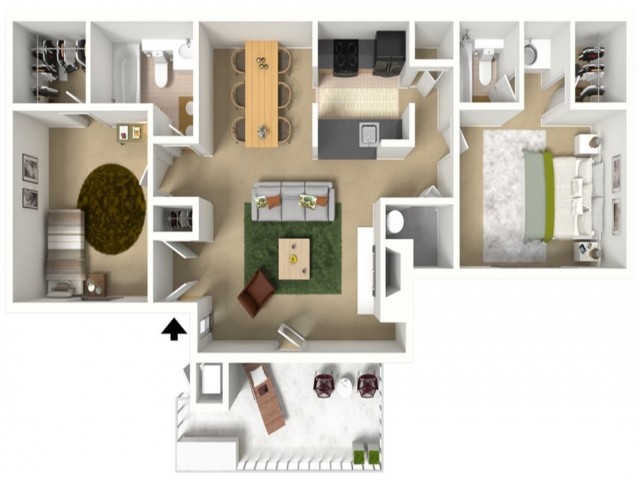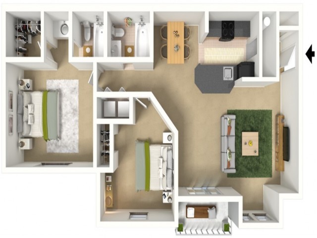 Modelo de apartamento: Harlequin2 Dormitorios, 2 Baños, 1002 sq ftDisponible January 9, 2026![]()
