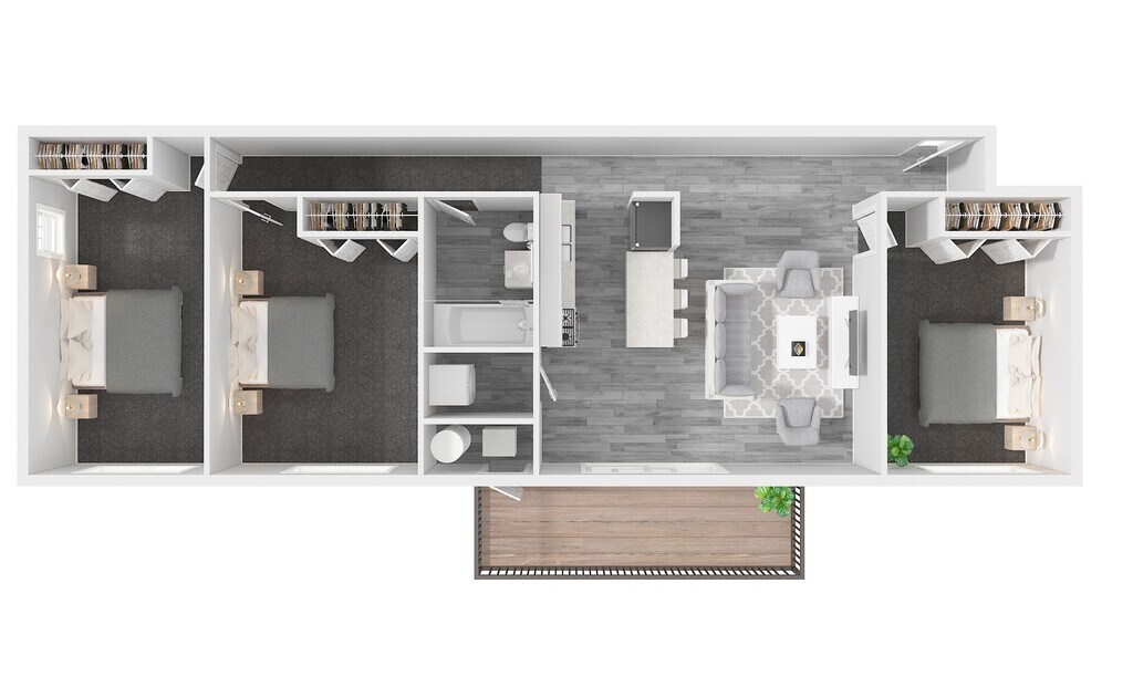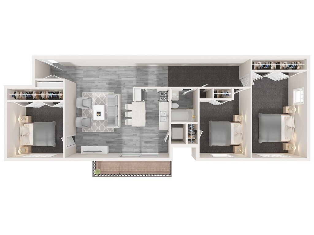 3 Dormitorios, 1 Baño, 1089 pies²Galería del Modelo