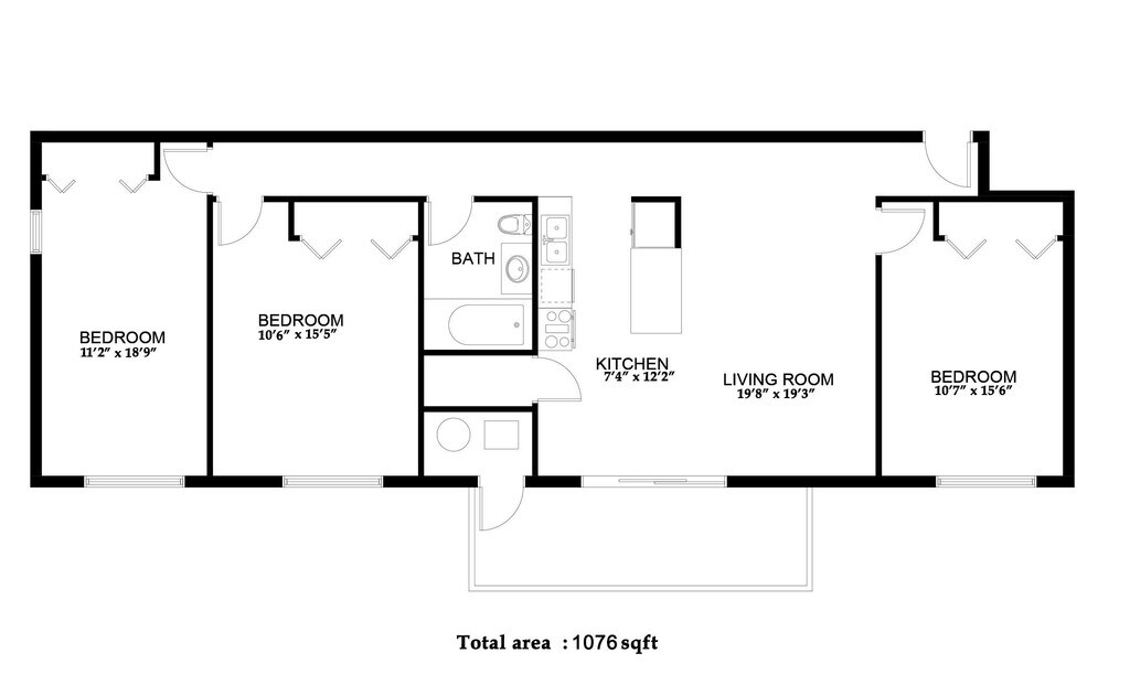 3 Dormitorios, 1 Baño, 1076 pies²Detalles de Diponibilidad