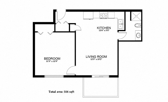 Estudio, 1 Baño, 500 pies²Galería del Modelo