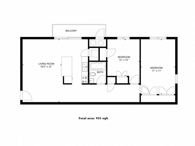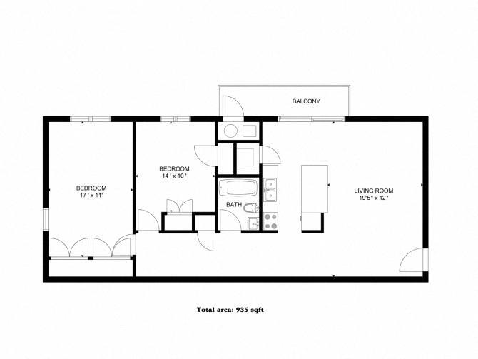 2 Bedroom, 1 Bath (A) - Plano 2 Unidad de apartamento: A-11Modelo de apartamento: 2 Bedroom, 1 Bath (A)2 Dormitorios, 1 Baño, 935 sq ftDisponible Ahora2 Bedroom, 1 Bath (B)