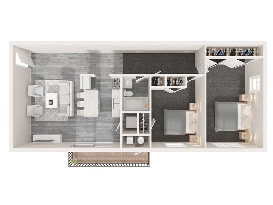 2 Dormitorios, 1 Baño, 1120 pies²Disponible AhoraGalería del Modelo
