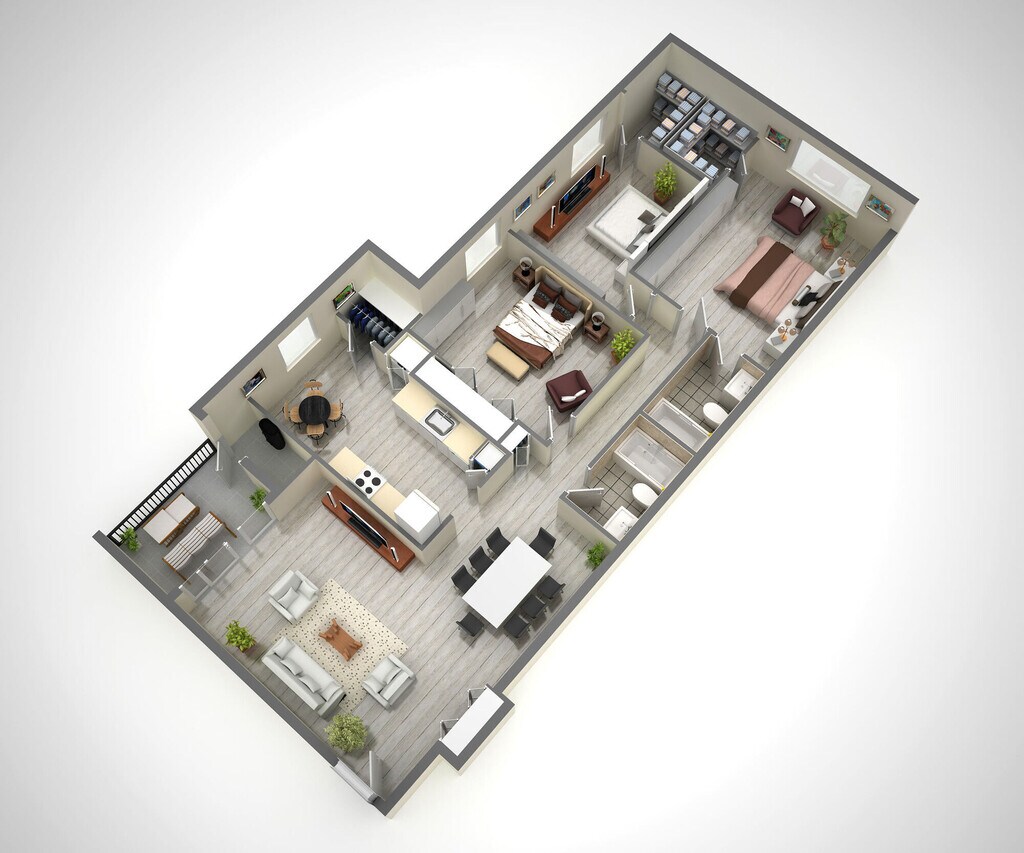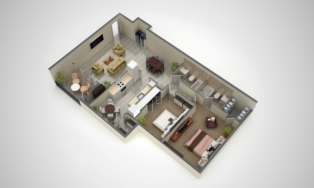 1 Dormitorio, 1 Baño, 1000 pies²Galería del Modelo