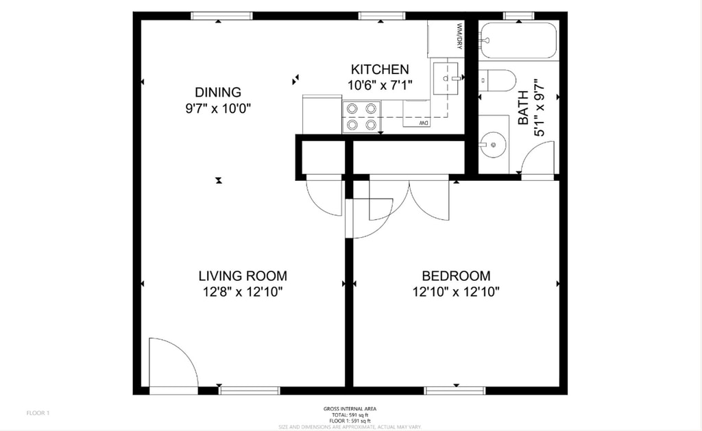 Modelo de apartamento: 1 Bedroom / 1 Bathroom Apartment1 Dormitorio, 1 Baño, 591 sq ftNo Disponible![]()