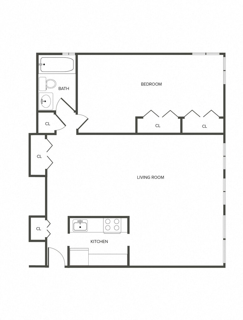 1 Dormitorio, 1 Baño, 836 pies²Precio Mensual TotalDisponible Nov 1Galería del Modelo