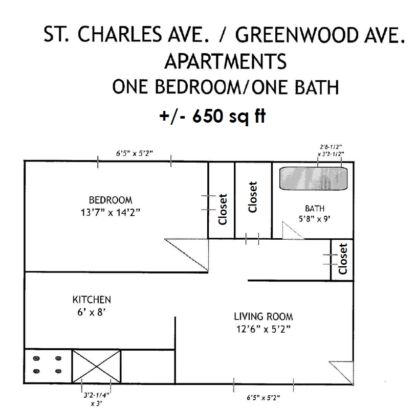 Modelo de apartamento: 1BR/1BA1 Dormitorio, 1 Baño, 650 sq ftNo Disponible1BR/1BA - Plano 1