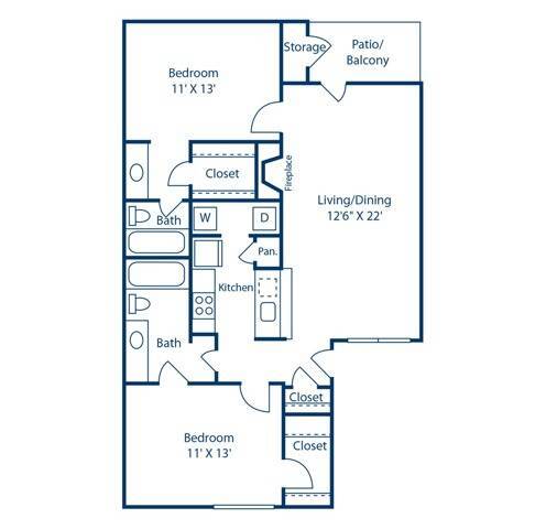 Modelo de apartamento: A2Desde $8251 Dormitorio, 1 Baño, 685 sq ftDisponible Ahora![]()