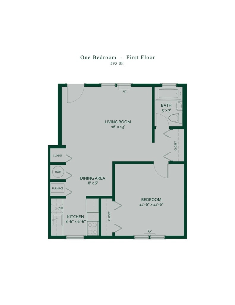 1 Dormitorio, 1 Baño, 620 pies²Galería del Modelo