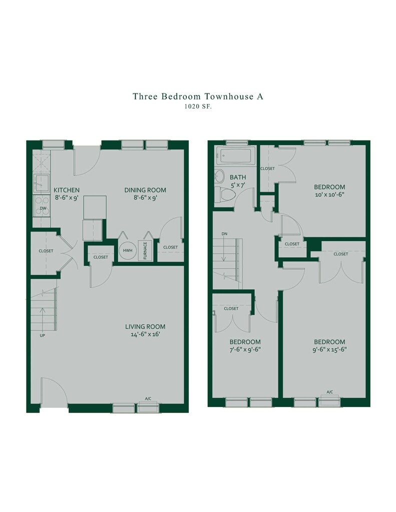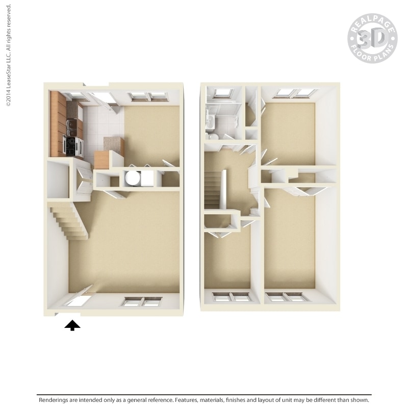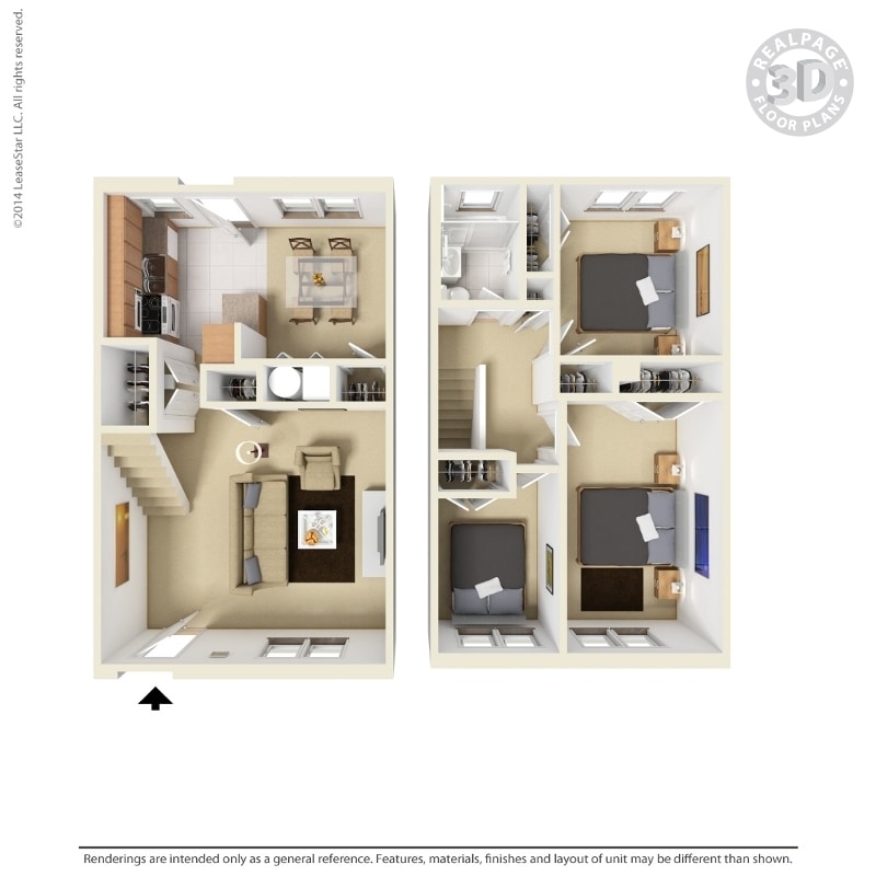 3 Dormitorios, 1 Baño, 1077 pies²Galería del Modelo