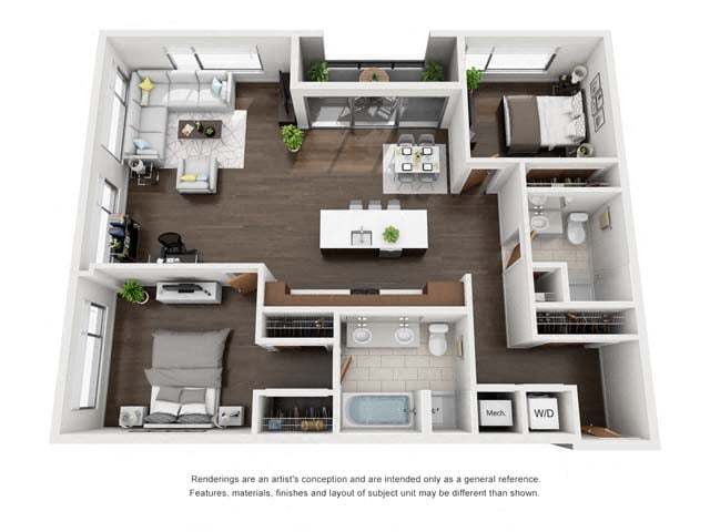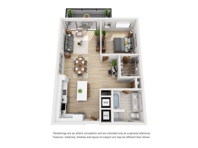 1 Dormitorio, 1 Baño, 810 pies²Galería del Modelo