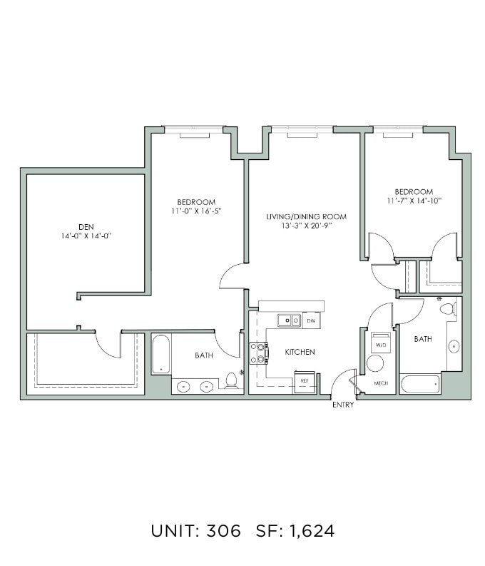 GP306 - Plano Unidad de apartamento: 306Modelo de apartamento: GP3062 Dormitorios, 2 Baños, 1624 sq ftDisponible Ahora![]()