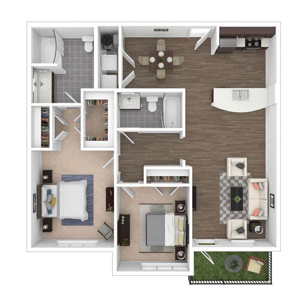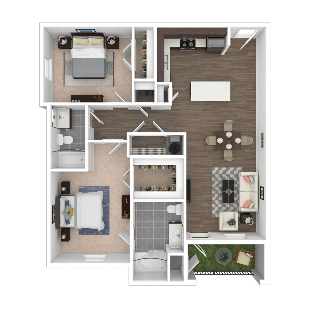 Modelo de apartamento: TranquilityDesde $1,3471 Dormitorio, 1 Baño, 802 sq ftDisponible AhoraLos planos son representaciones artísticas. Todas las dimensiones son aproximadas. El producto y las especificaciones reales pueden variar en tamaño o detalle. No todas las características están disponibles en cada vivienda en alquiler. Por favor, consulta con un representante para obtener más detalles.