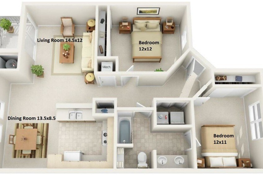 Modelo de apartamento: 2 Bedroom Apartment Flat$1,8602 Dormitorios, 1 Baño, 924 sq ftDisponible AhoraPlanosFotos![]()