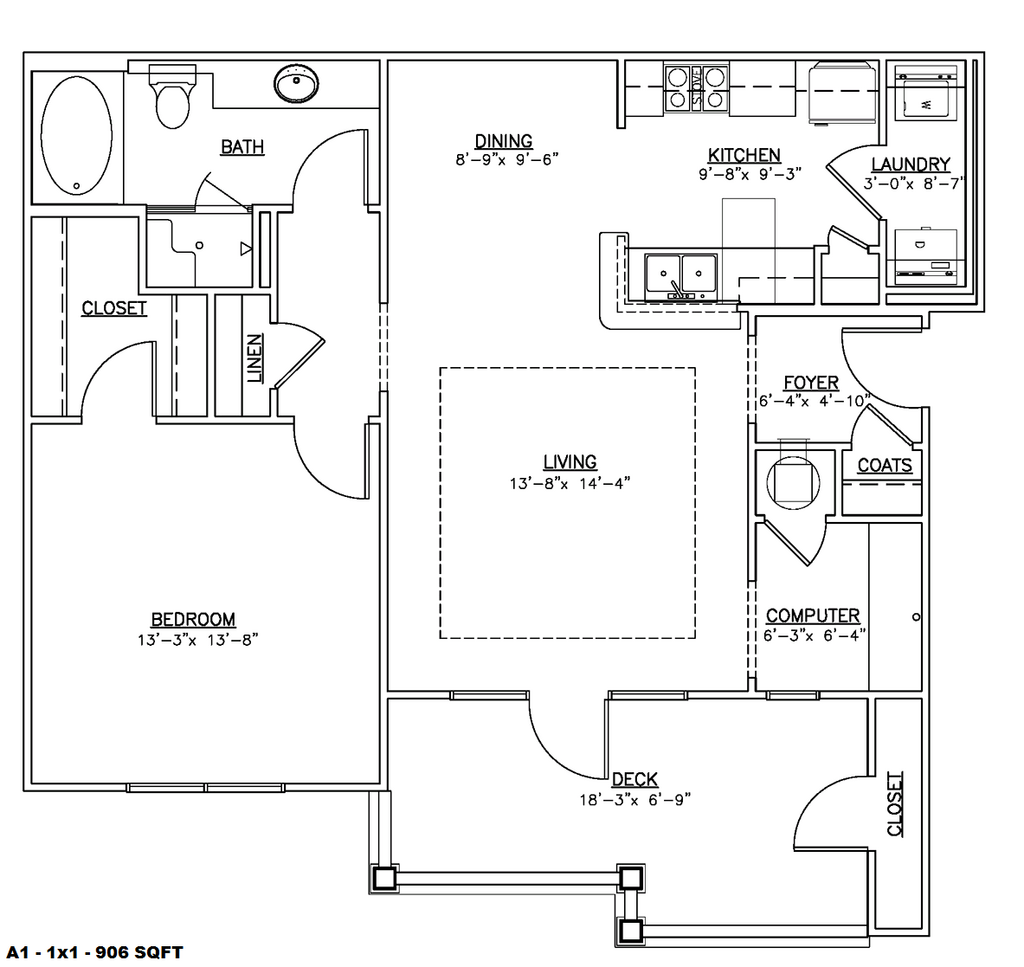 Modelo de apartamento: A1Desde $1,6601 Dormitorio, 1 Baño, 906 sq ftDisponible February 6, 2026![]()
