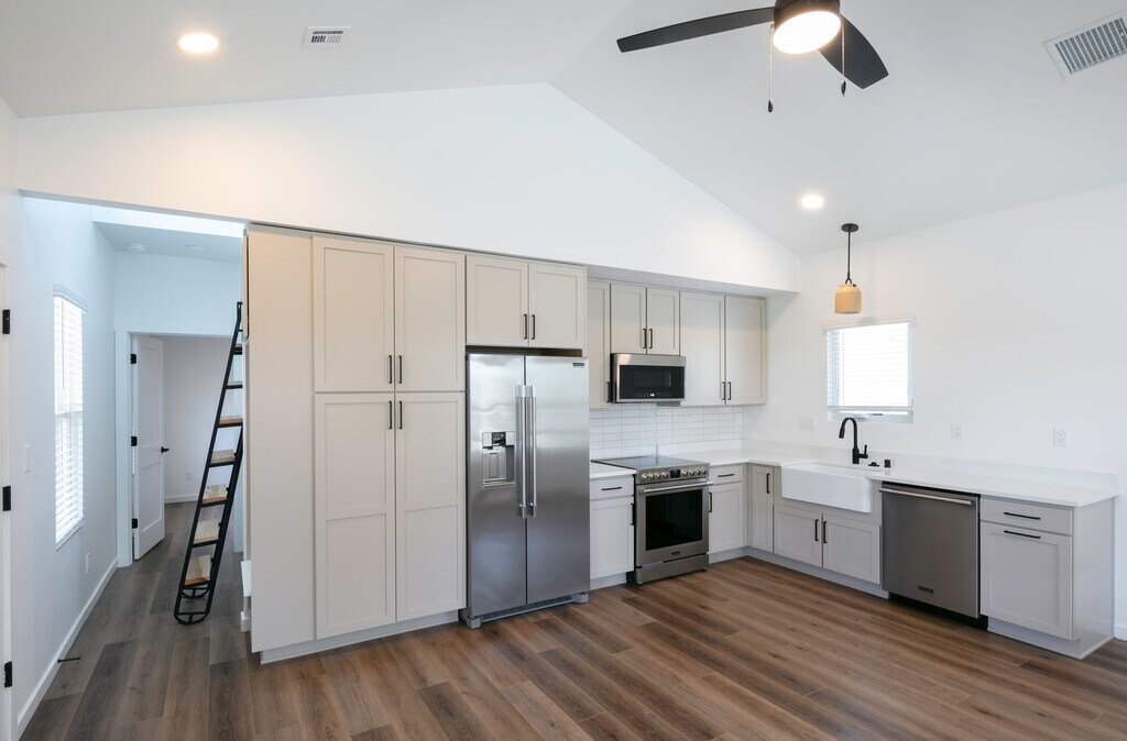 Live in New Mexico's first freestanding cottage rental project, Griegos Farms. Located in the heart of the North Valley, walking distance from river walking trails and Flying Star, Griegos Farms is architecturally and agriculturally immersed in the history and culture of Albuquerque’s North Valley. Just a 2 minute drive to Los Poblanos, 10 minutes from Old Town and 12 Minutes from Downtown Albuquerque, Griegos Farms is in the Center of it all. This brand new The one and two bedroom cottages at Griegos blend Northern New Mexican inspired architecture with the privacy of a detached home and a maintenance-free lifestyle of a professionally managed rental. Unlike a traditional apartment unit, Griegos Farms cottages are fully detached - meaning there are no shared walls. Individual cottages have been placed to create internal courtyards connected by pathways and gardens. Front-facing porches are located to encourage social interaction, while Individual cottages are grouped into intimate courts to create smaller clusters within Griegos Farms. The amenities at Griegos are thoughtfully designed to make you feel at home. With a modern farm style community building equipped with executive offices, full gym, co-working spaces we are thrilled to welcome you to Griegos Farms. Cultivate lasting relationships with your neighbors, engage in gardening activities and enjoy our thoughtful amenities. Take a walk to nearby restaurants or hop on your bike and ride along the beautiful acequias and river trails, Griegos Farms is located in the heart of the North Valley.
