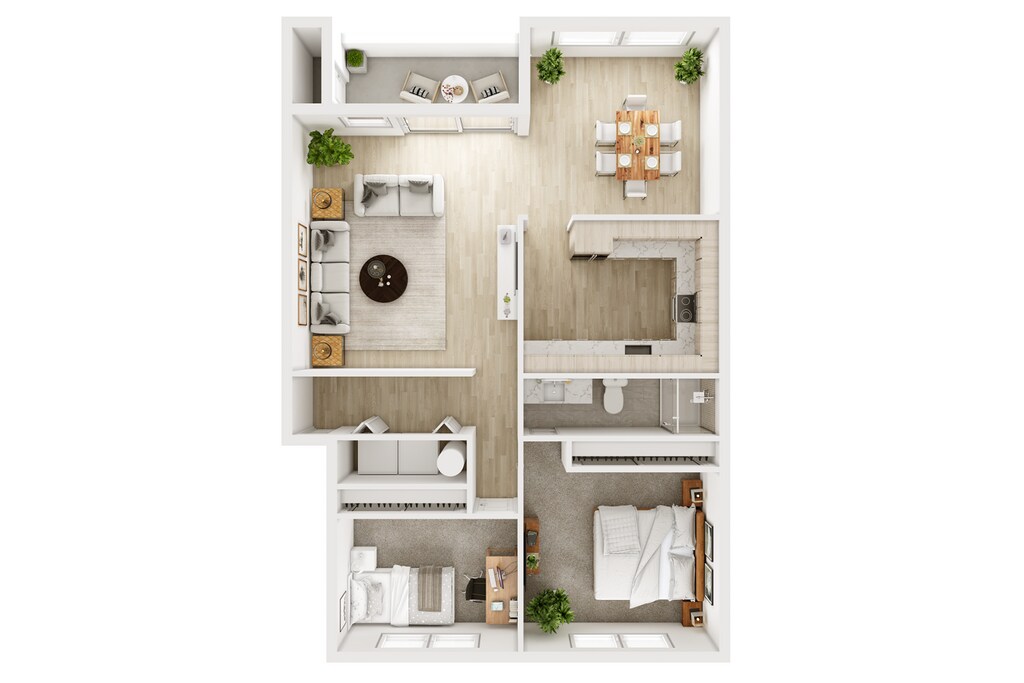 2 Dormitorios, 1 Baño, 865 pies²Disponible Dec 15Galería del Modelo