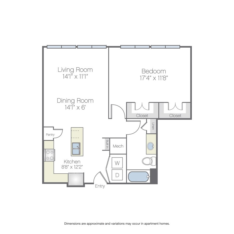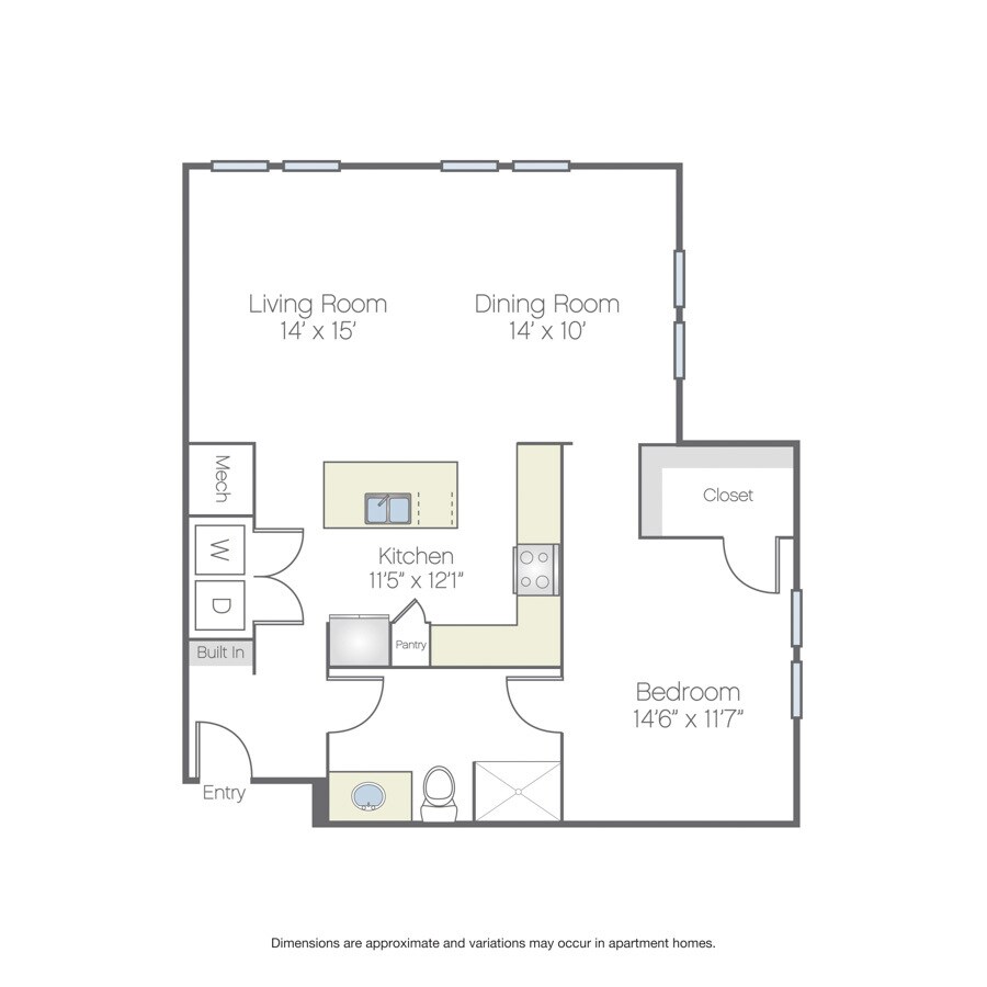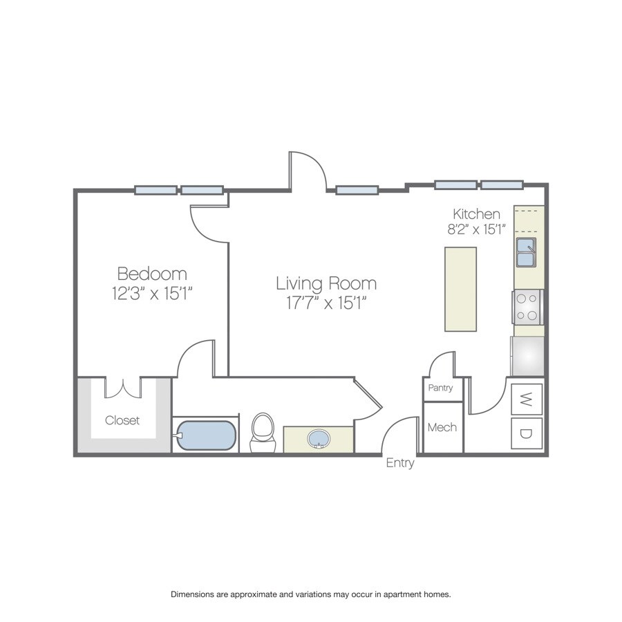 Estudio, 1 Baño, 618-626 pies²Disponible AhoraGalería del Modelo