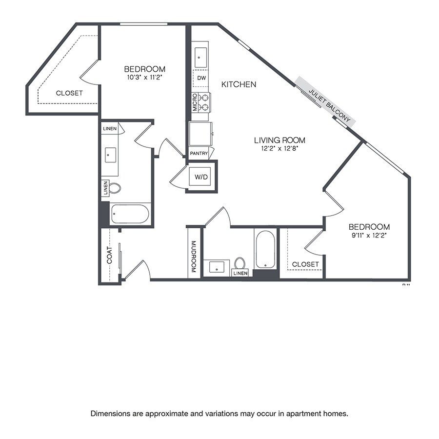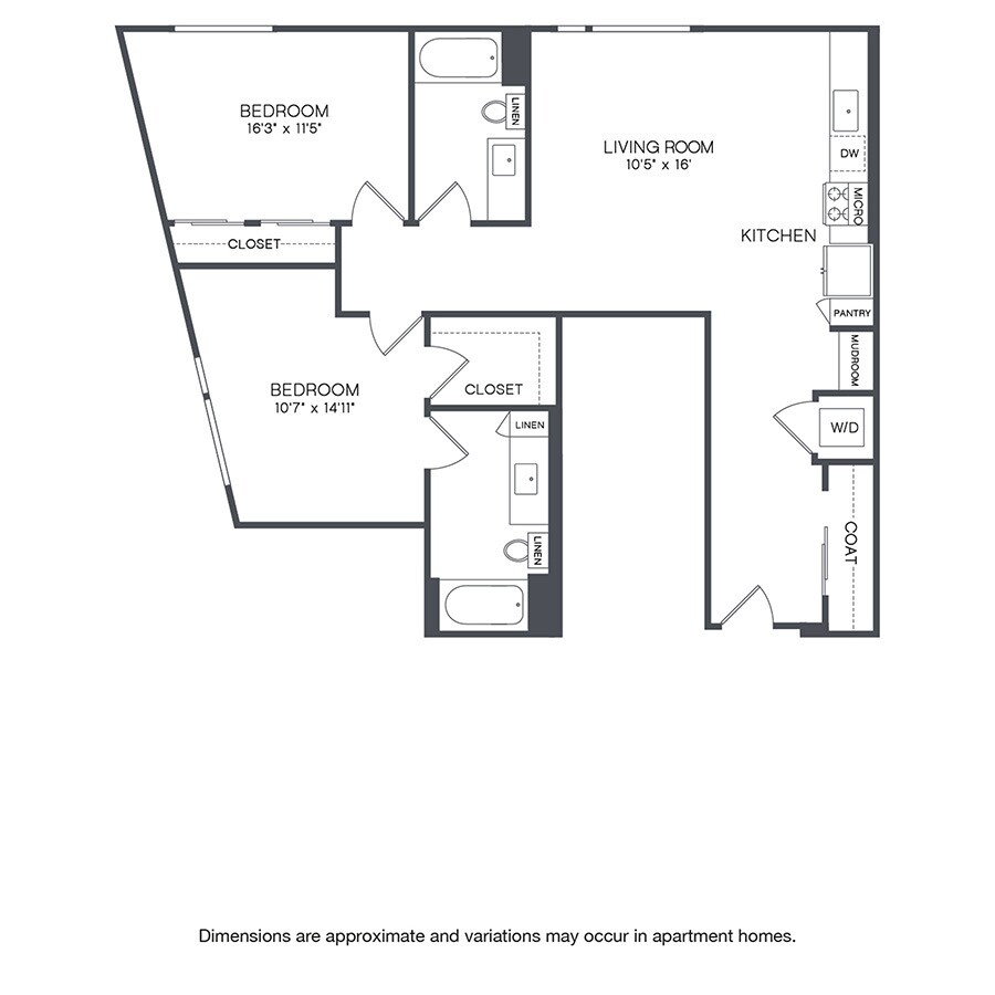 Nyanza Affordable - Plano 1 Unidad de apartamento: 314Modelo de apartamento: Nyanza Affordable$1,8861 Dormitorio, 1 Baño, 773 sq ftDisponible AhoraMidvale Affordable