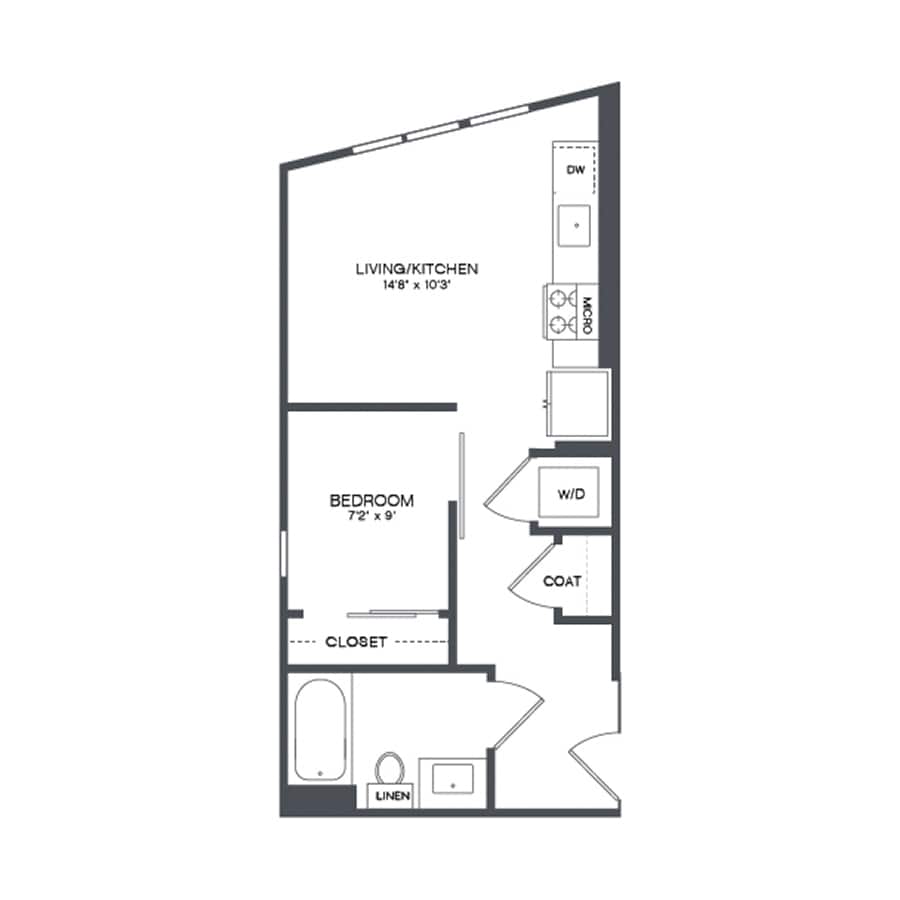 Modelo de apartamento: Bagley AffordableLlame para PreciosEstudio, 1 Baño, sq ftNo Disponible![]()