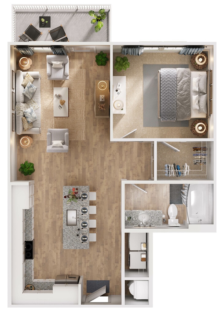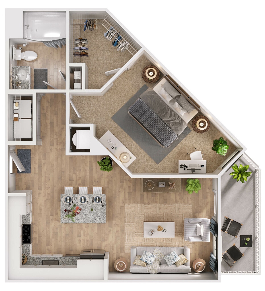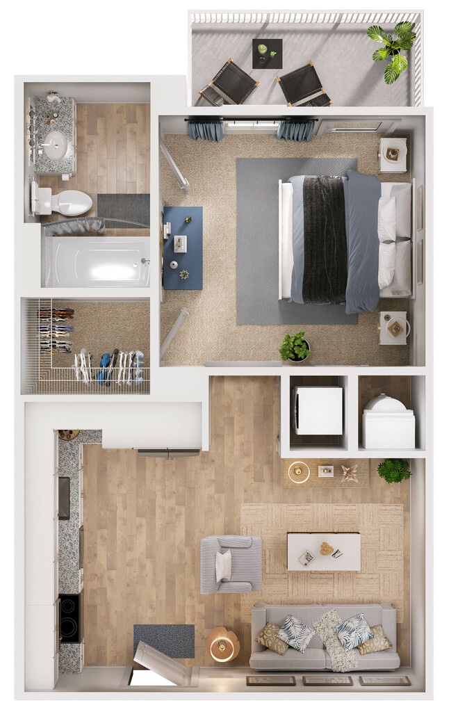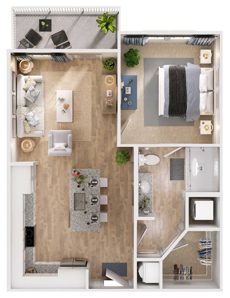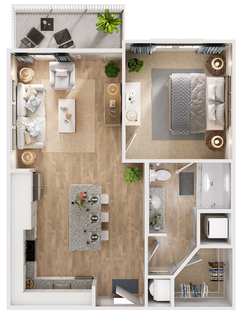 1 Dormitorio, 1 Baño, 787 pies²Disponible AhoraGalería del Modelo