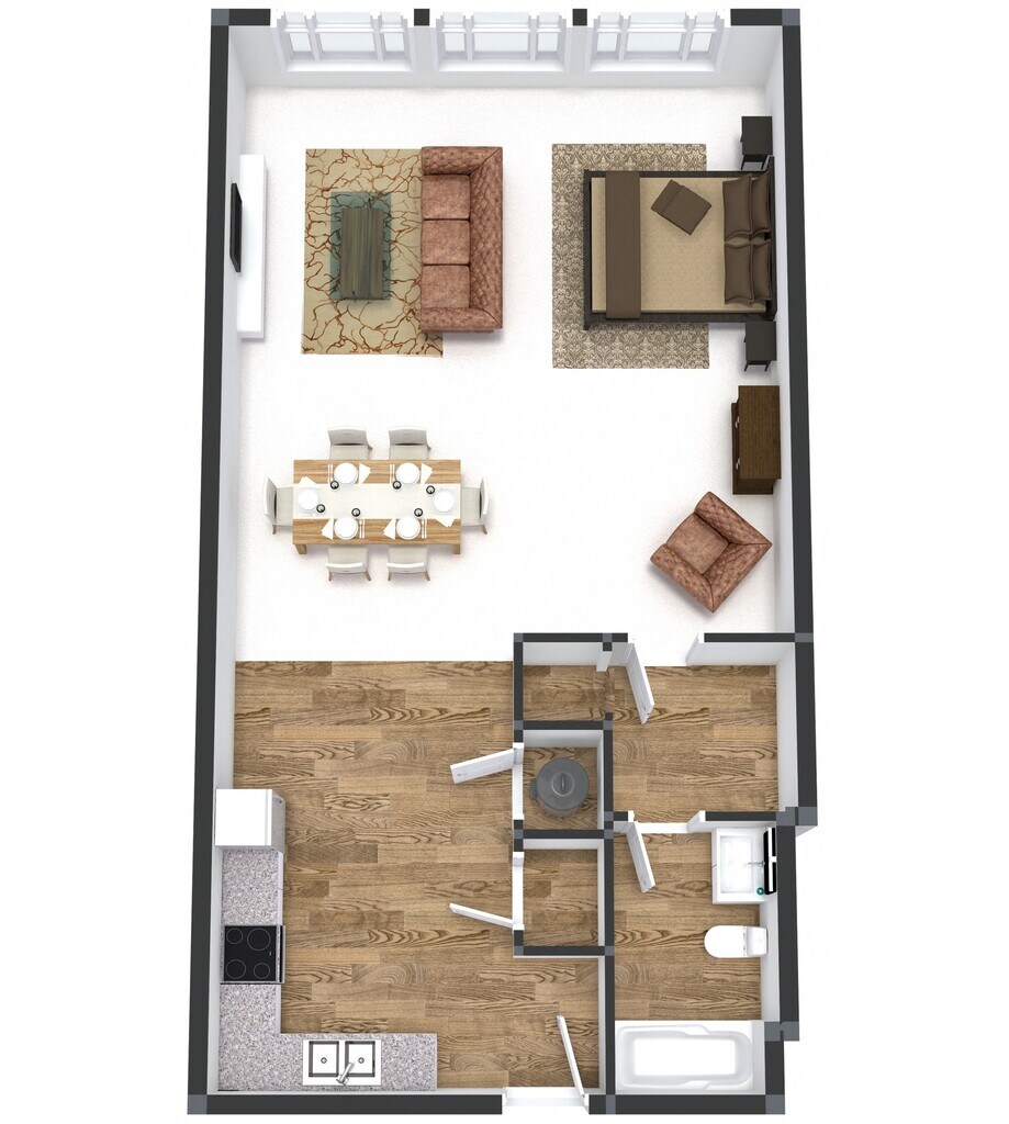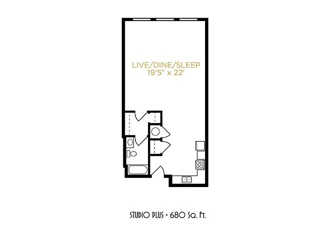 Estudio, 1 Baño, 680 pies²Galería del Modelo