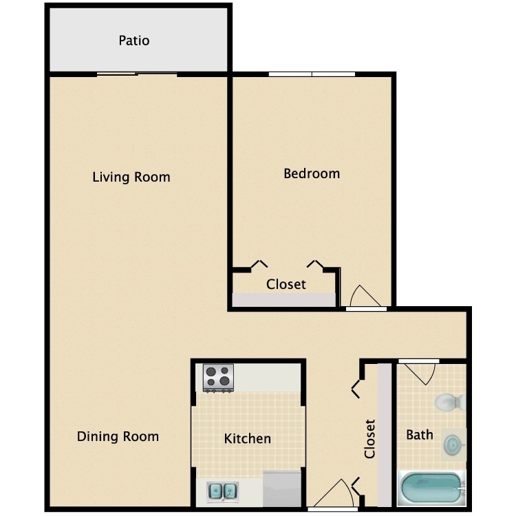 Modelo de apartamento: StoningtonLlame para Precios1 Dormitorio, 1 Baño, 730 sq ftNo DisponibleStonington - Plano 1 Mystic