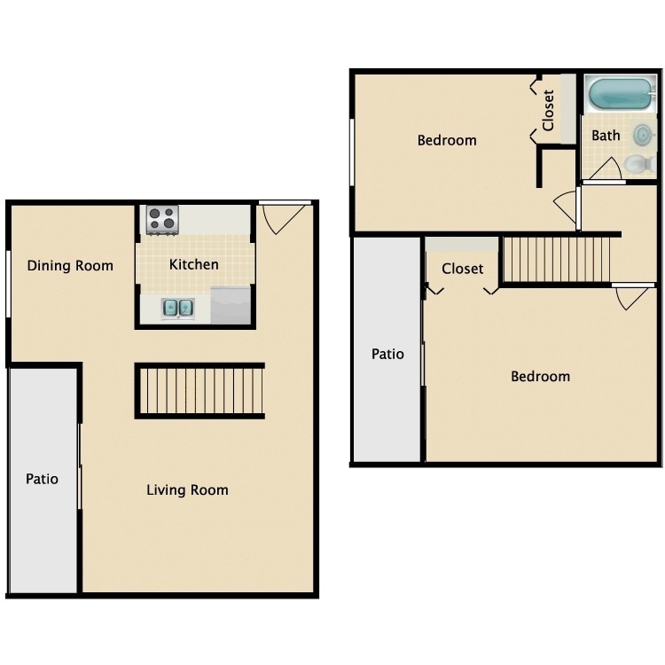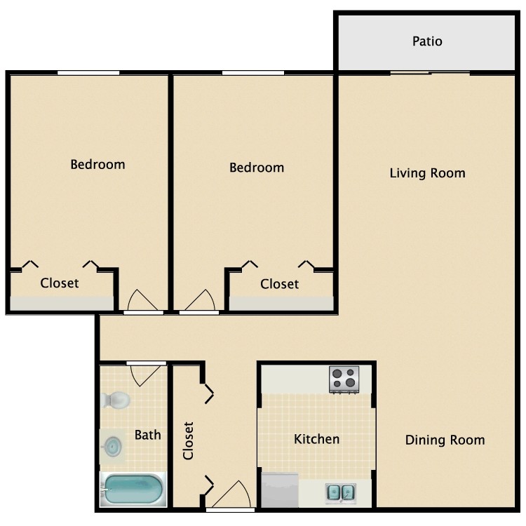 2 Dormitorios, 1 Baño, 1020 pies²Precio Mensual TotalDisponible Nov 10Galería del Modelo