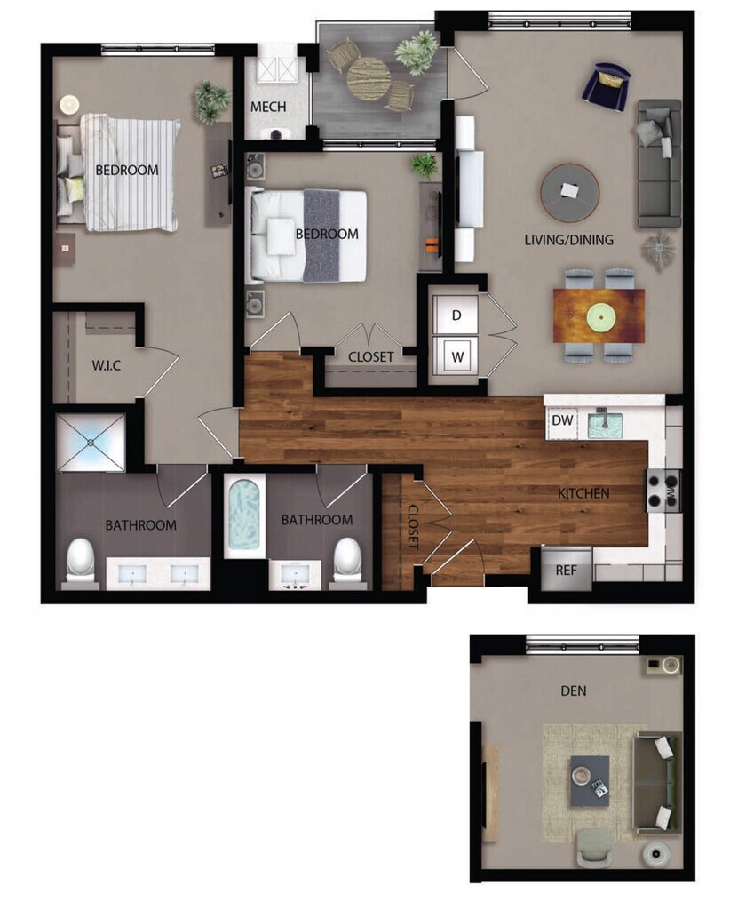 2 Dormitorios, 2 Baños, 1380 pies²Disponible AhoraEl más grandeEsta opción tiene las unidades más grandes para este modeloGalería del Modelo