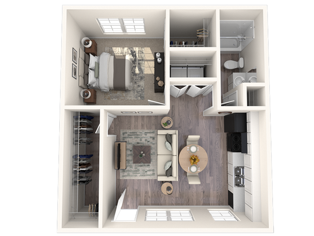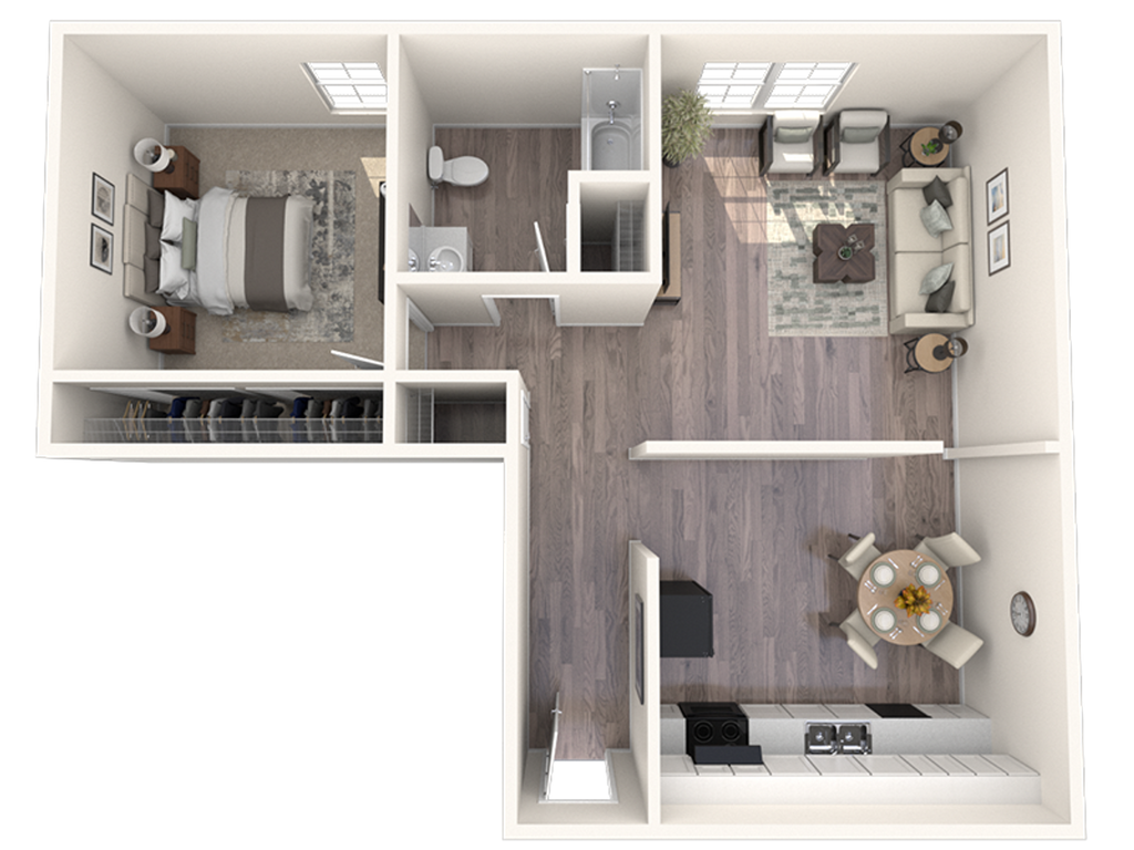 1 Dormitorio, 1 Baño, 675 pies²Disponible AhoraGalería del Modelo