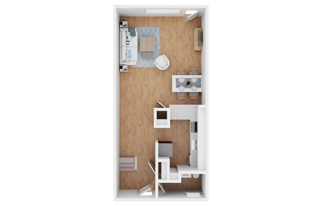 1 Dormitorio, 1 Baño, 800 pies²Disponible AhoraGalería del Modelo