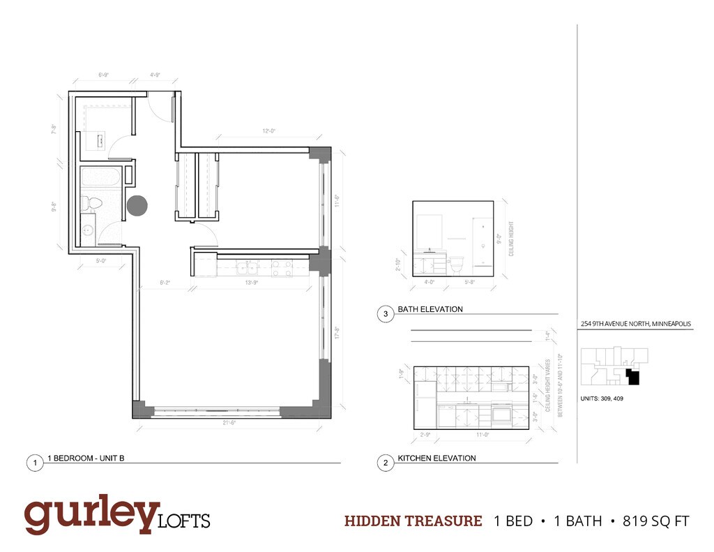 Gurley Lofts se encuentran en 254 9th Ave N cerca de la zona Warehouse District en Minneapolis, MN