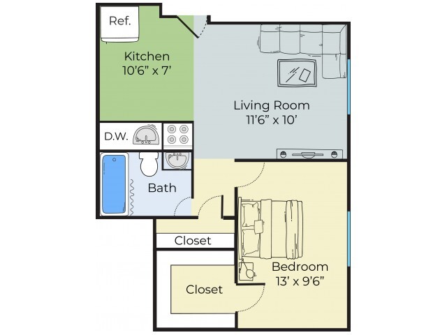Modelo de apartamento: One Bedroom1 Dormitorio, 1 Baño, 506 sq ftDisponible AhoraPlanosFotos![]()