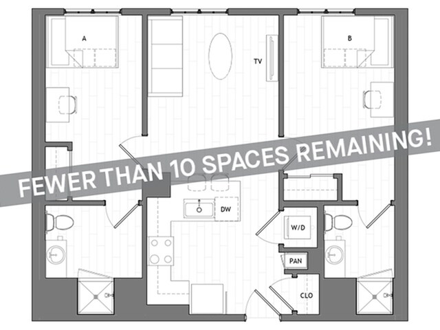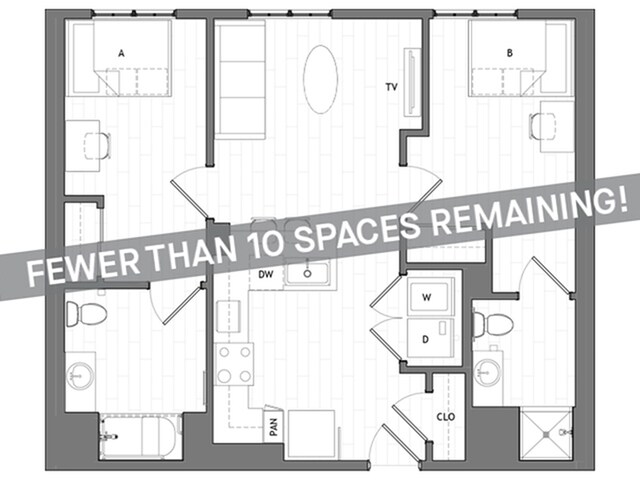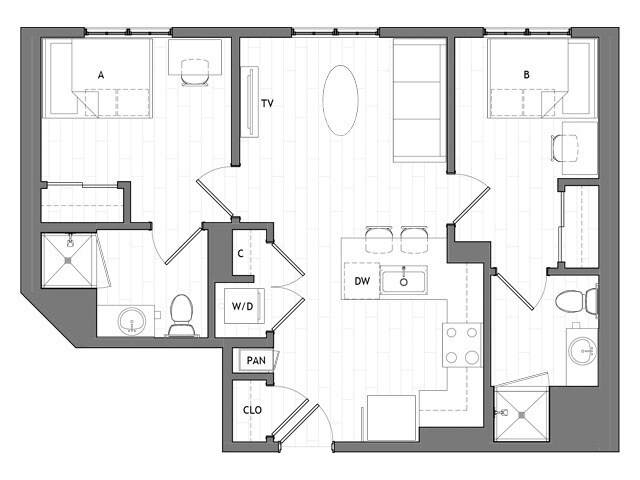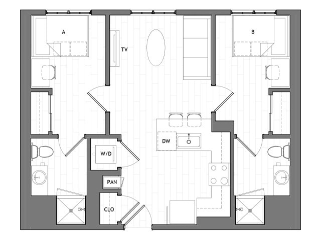 Modelo de apartamento: 2x22 Dormitorios, 2 Baños, 708-726 sq ftNo Disponible![]()