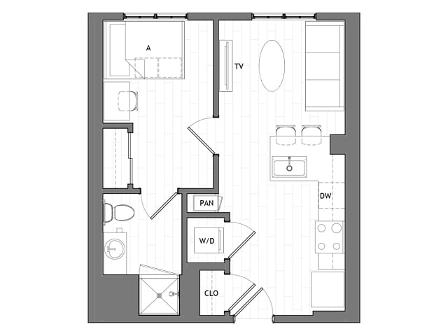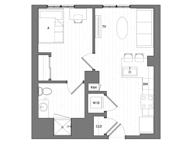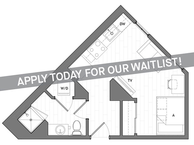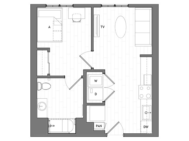 Modelo de apartamento: Sx1Estudio, 1 Baño, 389 sq ftNo Disponible![]()