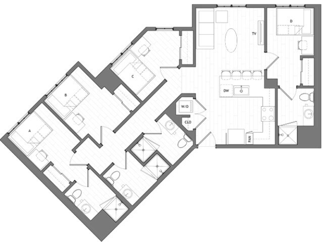 Modelo de apartamento: 4x44 Dormitorios, 4 Baños, 1152-1323 sq ftNo Disponible![]()