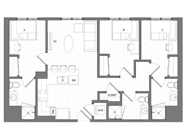 Modelo de apartamento: 3x33 Dormitorios, 3 Baños, 960 sq ftNo Disponible![]()