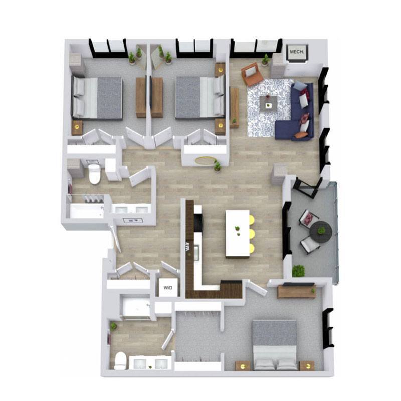 HQ Apartments ofrece apartamentos de Estudio a 3 Dormitorios desde $1,286 con 465–1,840 pies cuadrados. Aquí está el precio actual y la disponibilidad: