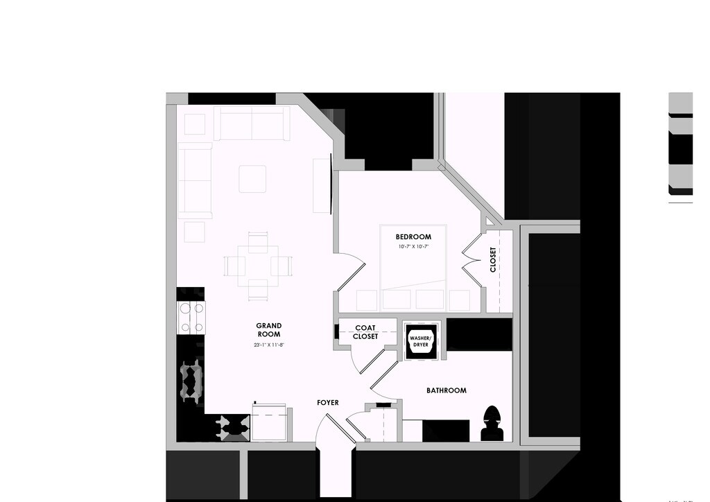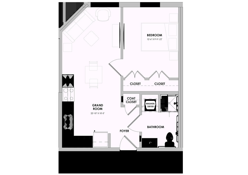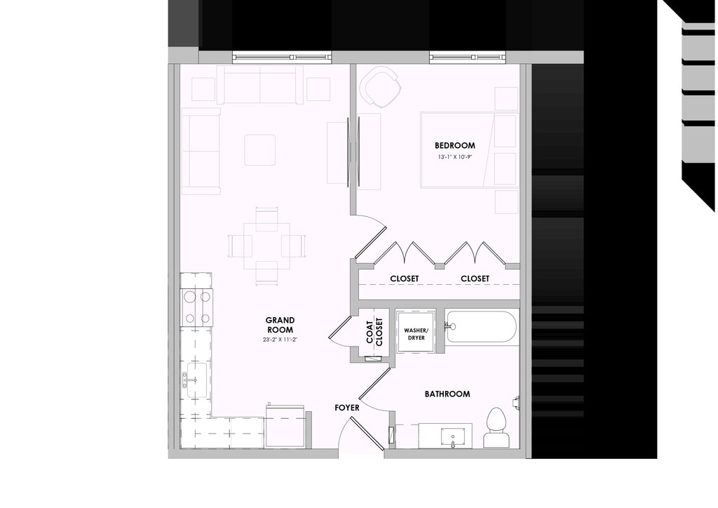 1 Dormitorio, 1 Baño, 548-630 pies²Disponible AhoraGalería del Modelo
