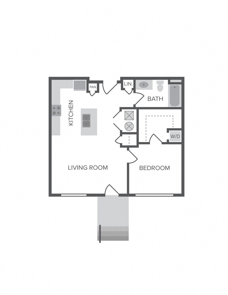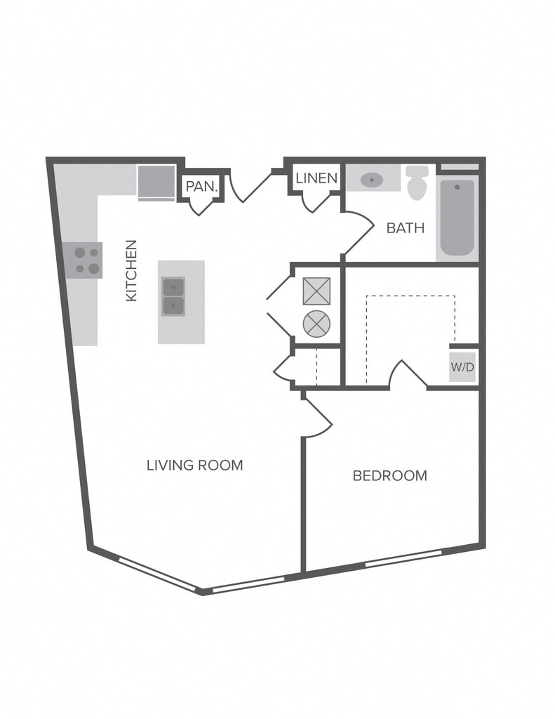 1 Dormitorio, 1 Baño, 543-888 pies²Disponible AhoraGalería del Modelo