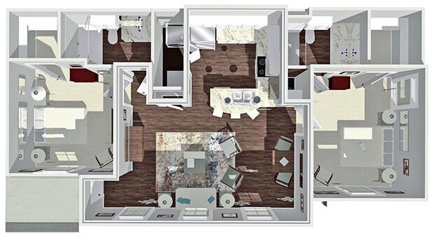 Modelo de apartamento: 2x2 Flat$1,8992 Dormitorios, 2 Baños, 946 sq ftDisponible Ahora2x2 Flat - Plano 1 2x2 Balcony