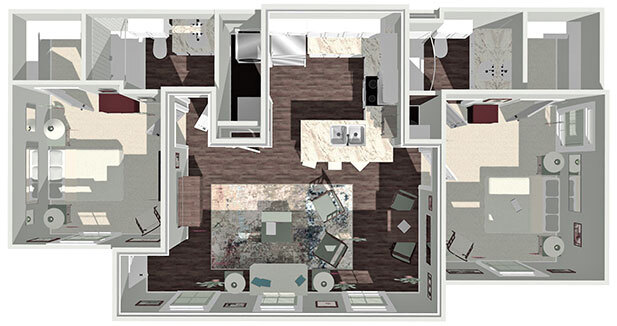 Modelo de apartamento: 1x1 Courtyard$1,7991 Dormitorio, 1 Baño, 750 sq ftNo Disponible1x1 Courtyard - Plano 1 2 Dormitorios