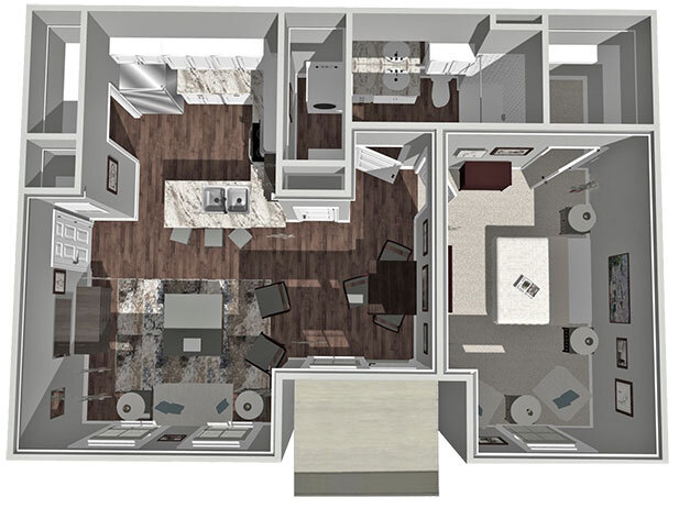 1 Dormitorio, 1 Baño, 750 pies²Disponible AhoraGalería del Modelo