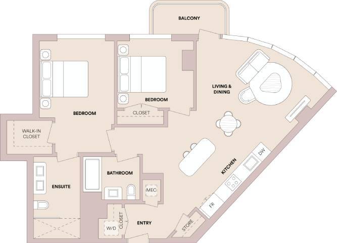 Modelo de apartamento: BQ2 Dormitorios, 2 Baños, 1088 sq ftDisponible April 1, 2026Los planos son representaciones artísticas. Todas las dimensiones son aproximadas. El producto y las especificaciones reales pueden variar en tamaño o detalle. No todas las características están disponibles en cada vivienda en alquiler. Por favor, consulta con un representante para obtener más detalles.
