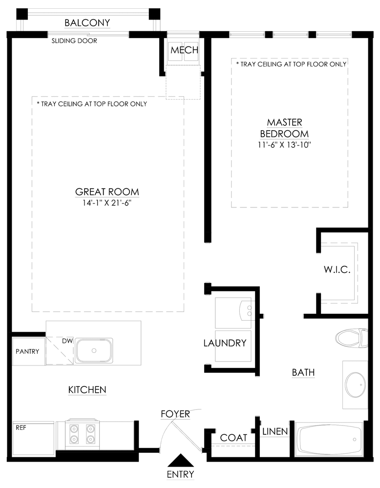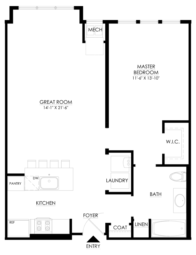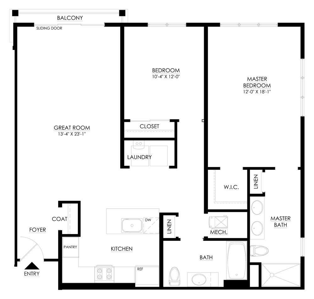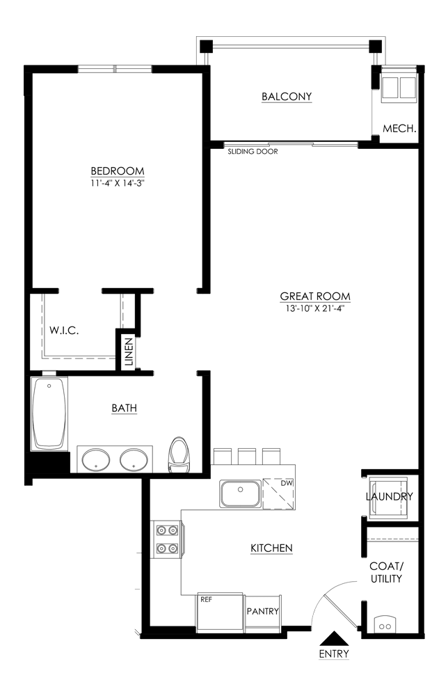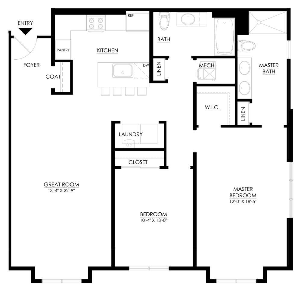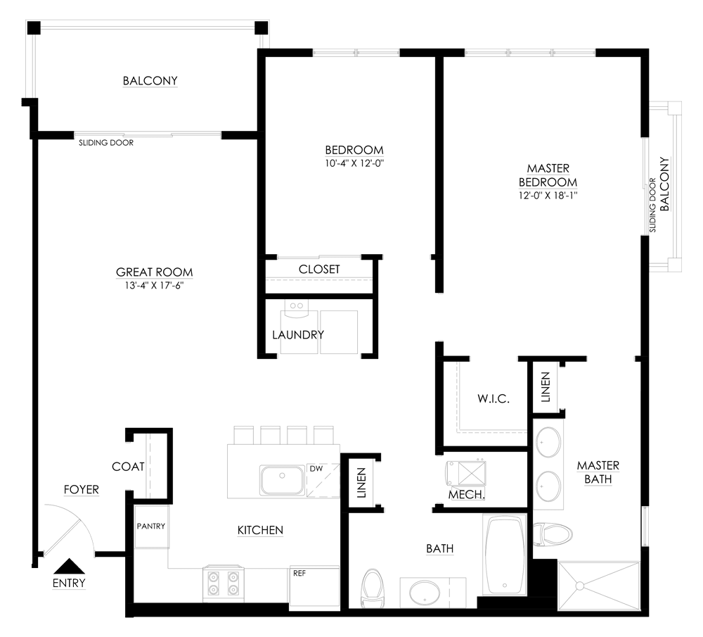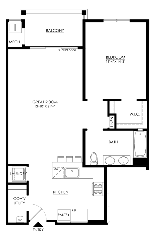 1 Dormitorio, 1 Baño, 956 pies²Disponible AhoraEl más grandeEsta opción tiene las unidades más grandes para este modeloGalería del Modelo
