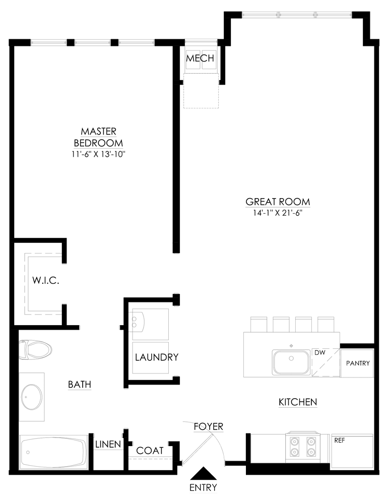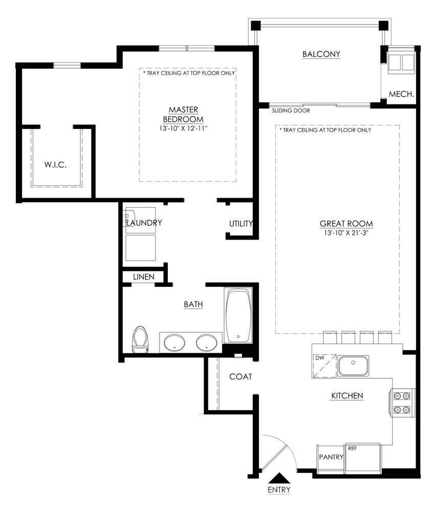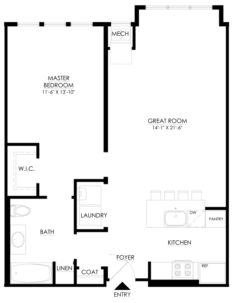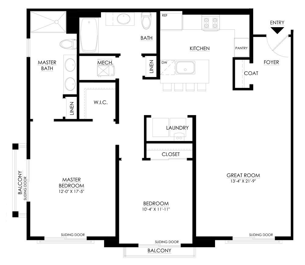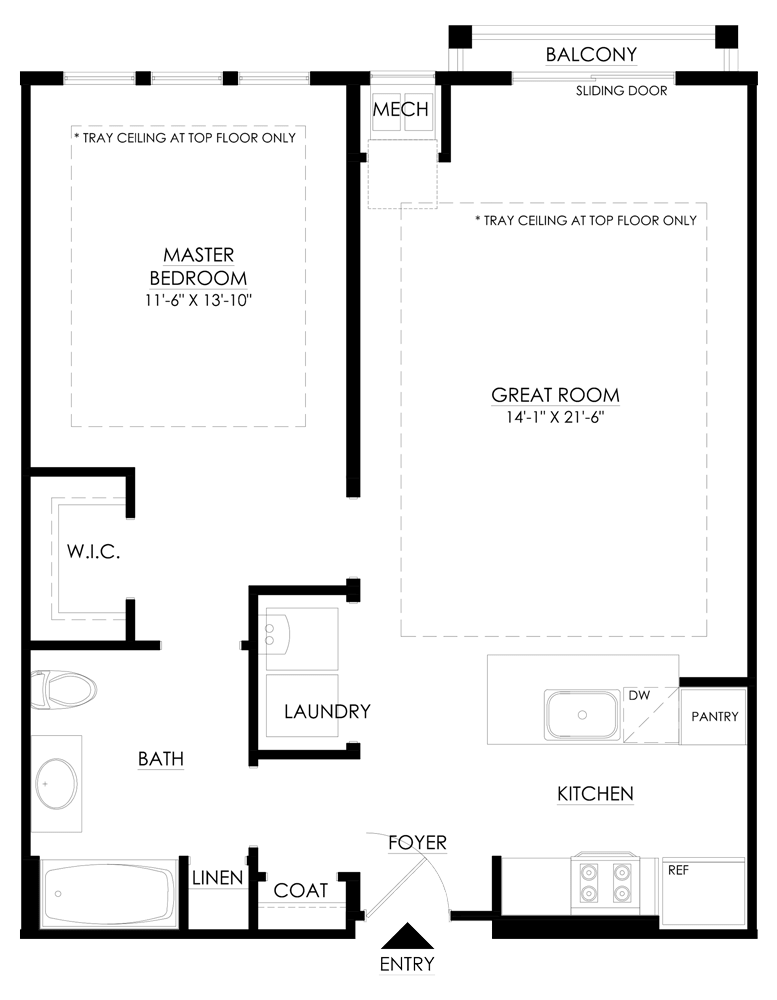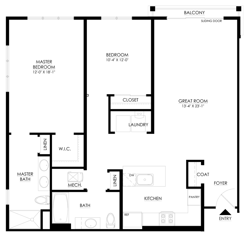 1 Dormitorio, 1 Baño, 956 pies²Disponible AhoraEl más grandeEsta opción tiene las unidades más grandes para este modeloGalería del Modelo
