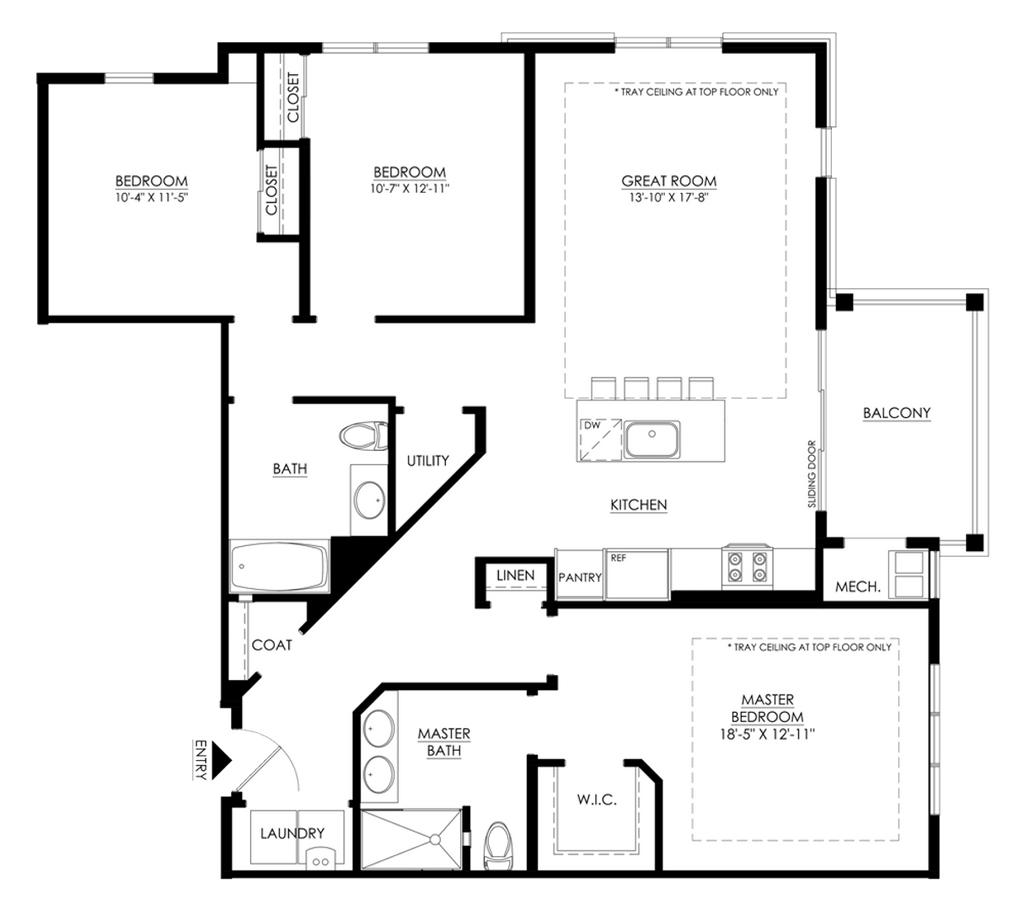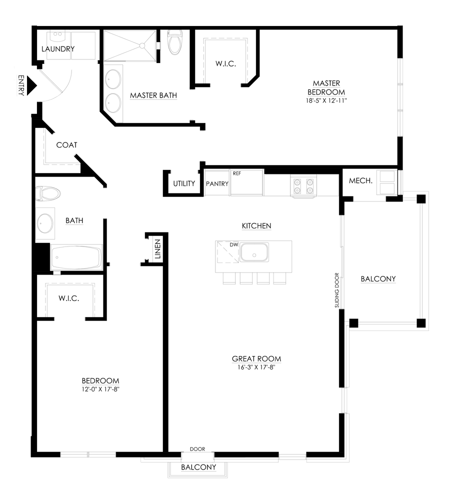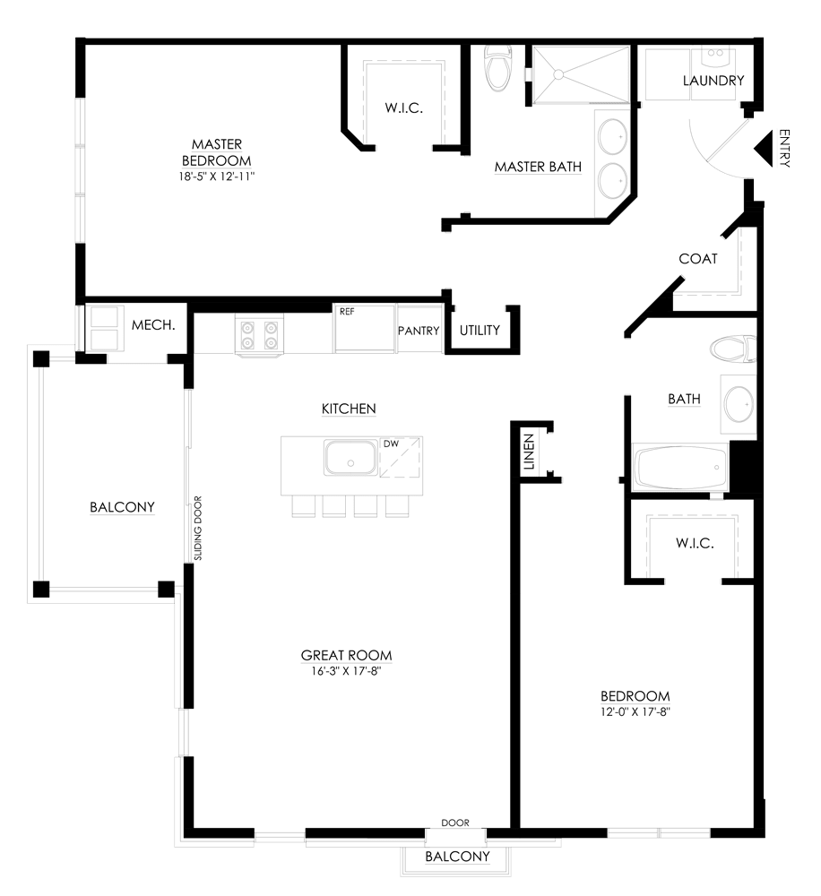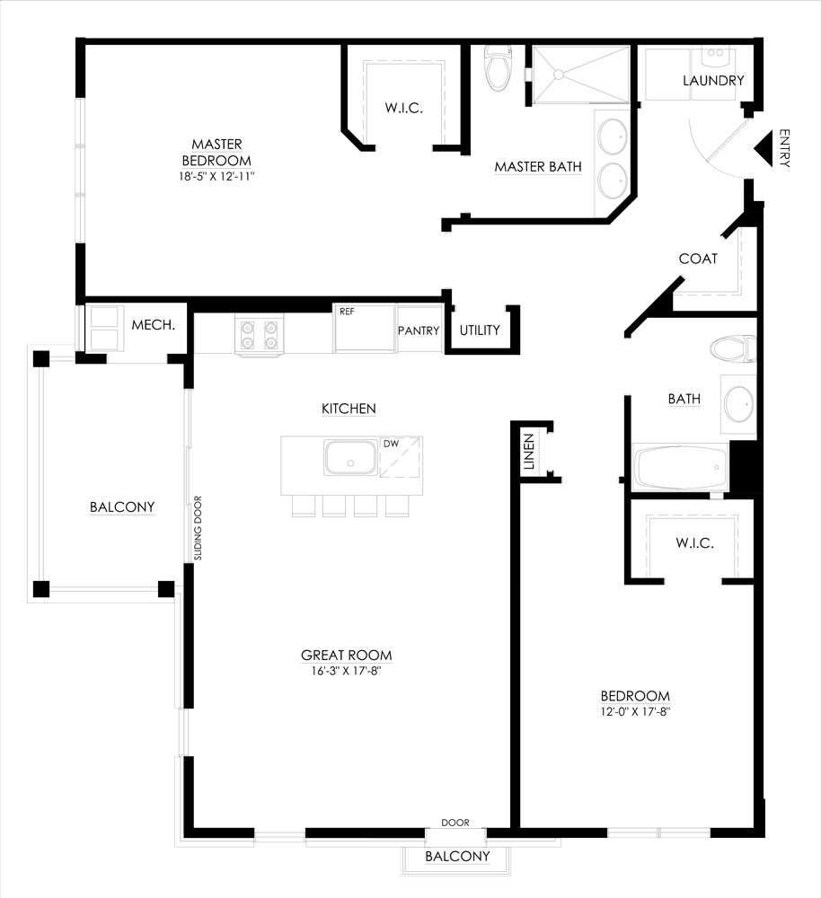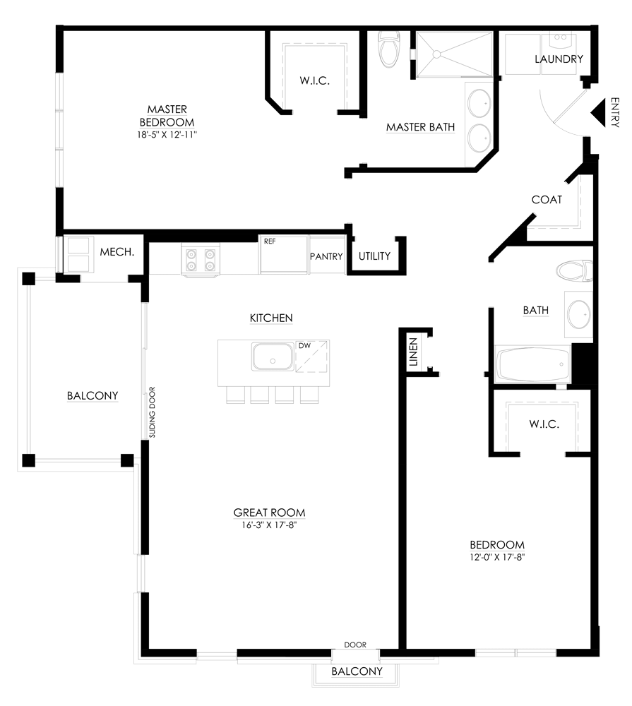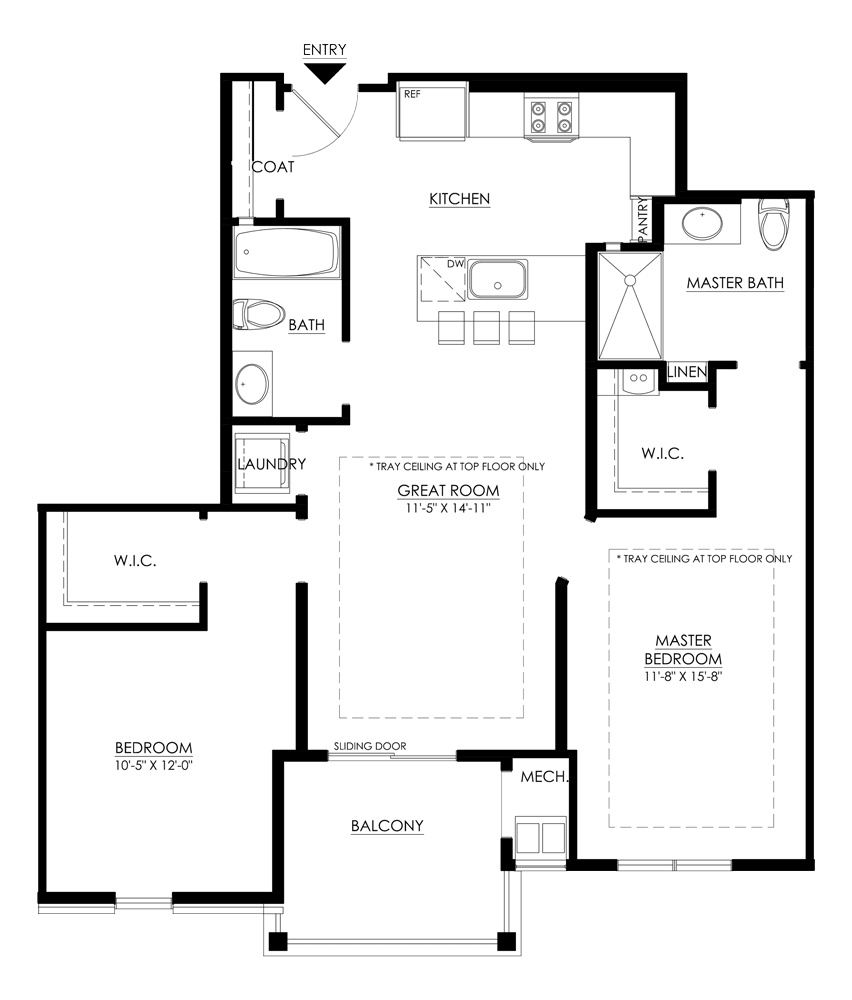 1 Dormitorio, 1 Baño, 956 pies²Disponible AhoraEl más grandeEsta opción tiene las unidades más grandes para este modeloGalería del Modelo